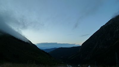 Die Dämmerung setzt bereits ein, aber wir beschließen so weit wie möglich durch die Pyrenäen zu fahren, es beginnt zu regnen und wird langsam immer dunkler, zusätzlich zieht jetzt auch noch Nebel auf. Der Regen wird ziemlich stark und da wir auch nicht mehr wirklich viel sehen, entscheiden wir uns 50 Km vor Viehlla in den Pyrenäen zu übernachten.