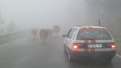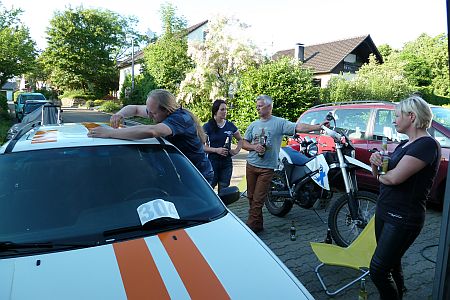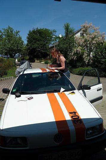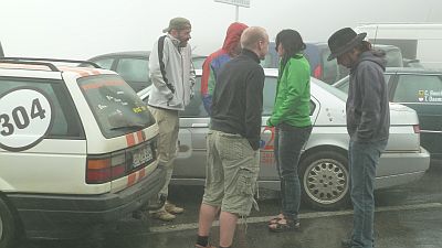 Der Regen entwickelt sich im Laufe der Nacht zu einem stürmischen Unwetter mit Blitz, Donner und Hagel. Wir wachen auf und haben den selben Gedanken *hoffentlich sind wir in unserem Rallyeauto sicher...* denn wir stehen direkt unter einem großen Baum.. Vor Müdigkeit verwerfen wir aber sofort wieder diesen Gedanken und schlafen gleich wieder in unserem Rallyewagen ein.