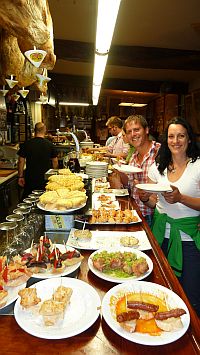 Wir erreichen San Sebastian unser heutiges Etappenziel, eine wirklich sehenswerte Stadt. Wegen den strengen Bauvorschriften blieb der ursprüngliche Charakter der Stadt erhalten, keine Tourihotels. Hier feiern wir ein bisschen mit den anderen Teams. Ein absolutes Muss ist ein Besuch in den Tappabars ... Danke Cornelius für den Tipp.