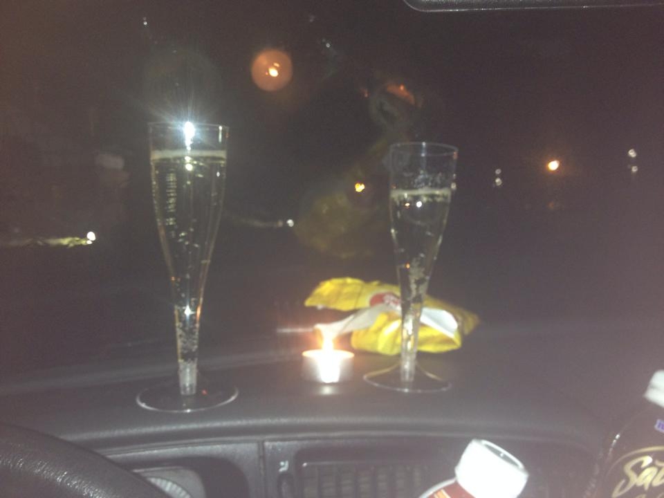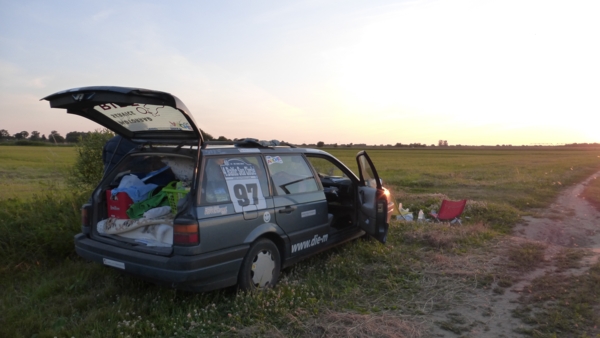Irgendwo in Polen packen wir die Flasche Sekt aus und feiern schon mal unseren Sieg und dass unser Rallye-Passat, uns sicher und ohne zu mucken, über 9000 km durch 10 Länder gefahren hat.