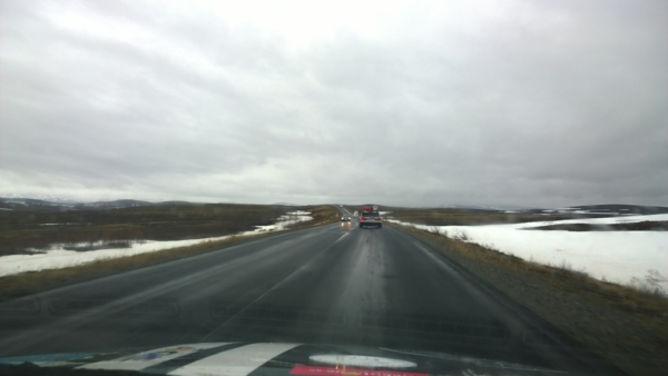 Heute ist ein reiner Fahrtag. Es bleibt eiskalt, Wind, Regen, Nebel, Schnee und Sonne wechseln sich ständig ab. Wir sind froh, dass wir heute nicht so oft aus dem Auto aussteigen müssen. Wir denken an das Mädel-Team 126 – „The Defenders“, die mit ihrem zugigen Jeep in der Kälte unterwegs sind. Bei unserem letzten Treffen erzählten sie uns, dass es in ihren Jeep rein regnet und sie die Schlitze mittlerweile mit Teppichen ausstopfen, um es etwas warm und trocken zu bekommen.